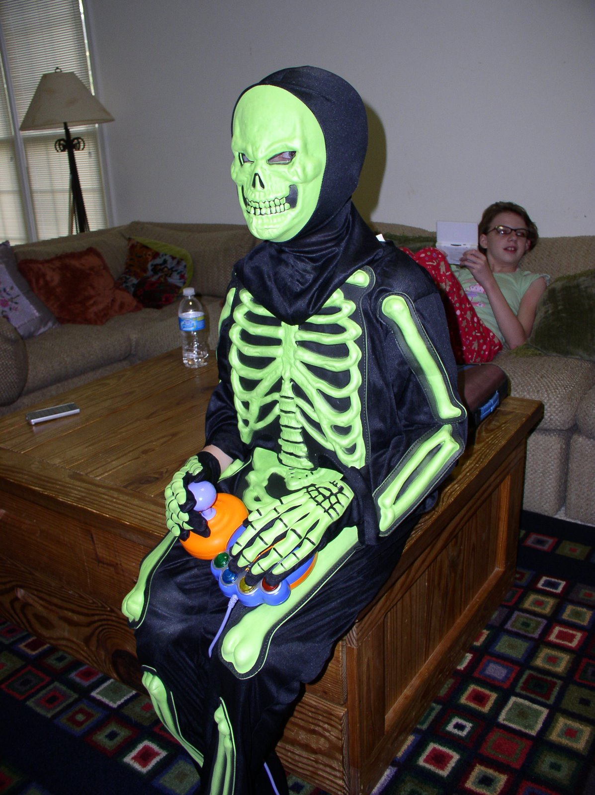This is my oldest son Crews, in his halloween costume. He’s a glow-in-the-dark skeleton. At least that’s what the package said. But alas, he is neither in the dark, nor does the costume