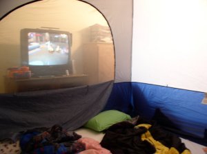 Yup. Unzip the window and there’s the TV, with the Wii and “Star Wars: The Complete Saga” ready for early morning gaming.