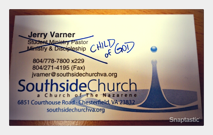 1. I was not born to be a youth pastor. This one seemed off at first, because I’ve always thought being a youth pastor is what God wants me to do. It’s who I am. It’s what I’m about. But that’s wrong. I wasn’t born to be a youth pastor. I was born to be a child of God. Being a youth pastor is simply my expression of worship based on the gifts God has given me. I am not identified by what I do (pastoring students), but rather who I am (child of God). Whew.