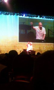 Knowing Andy and working with Andy as they do, they chatted briefly. *Warning: I’m about to temporarily go “giddy school girl” and it’s not going to be pretty. I have to admit that meeting the Skit Guys was a huge thrill, especially when Eddie told me we had met before, at Saddleback Church at a PDYM conference in CA and that he remembered me. I don’t care if he was lying, I wanted to believe him too much not to. Then Andy mentioned my co-youth pastor Steve Harper and asked if Eddie remembered Steve. He thought and said, “No, I don’t think so.” Now, I’m not telling this to be mean; I’m telling it to set up the great thing that happened next. So, I said to Eddie (with Tommy–the other 1/2 of The Skit Guys standing nearby), “So can I tell Steve that you remembered me and not him?” And Tommy Woodard laughed at me. He actually laughed at something I said. If you know Tommy Woodard, you know that’s pretty cool.