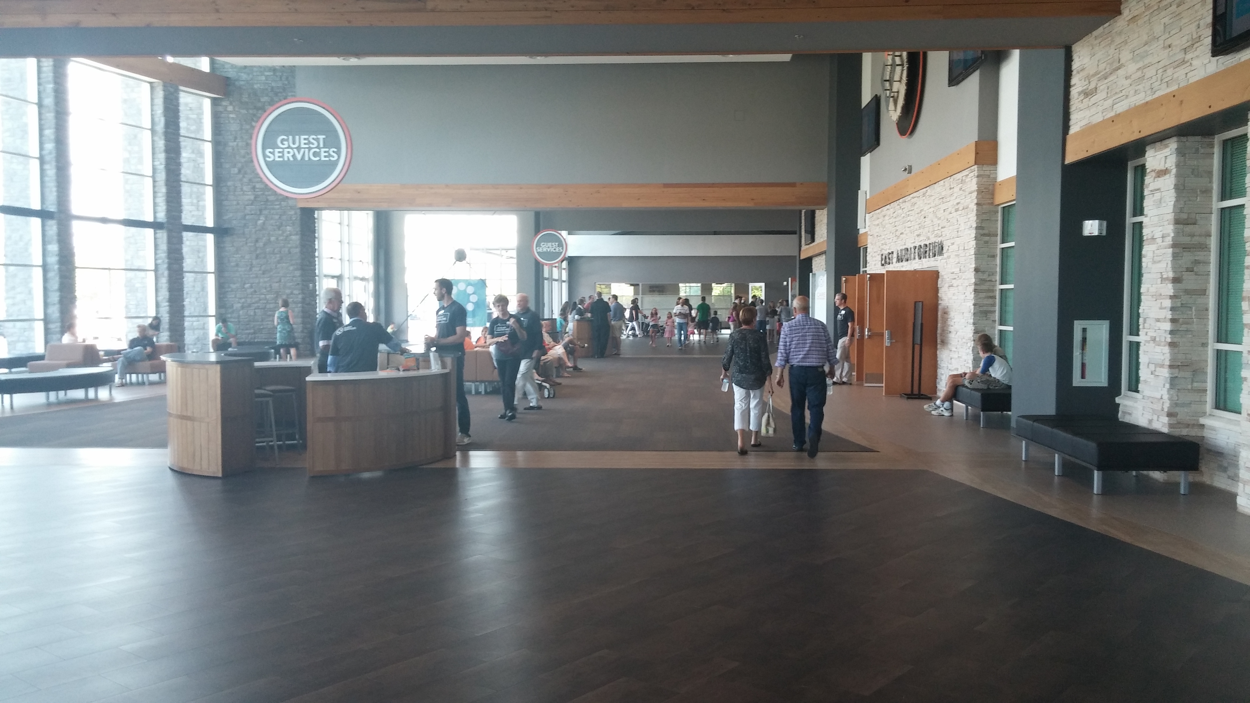 in the large auditorium we were in. And we were; there’s no question that North Point is a global ministry. It was unmistakable, at least to me. We enjoyed the service, the worship music, and the message by Clay Scroggins. (I happened to see Clay in a hallway before the service and had to deliberately “play it cool” so I didn’t totally geek out.) The service ended, we made our way out of the sanctuary auditorium, helped myself to another eyeful of the student ministry area, snapped some pictures, and walked out of the building. Great time, great teaching, great ministry, and a great Starbucks gift card given to first-time visitors. Overall, great. If you want to see the service I attended for yourself, click here.