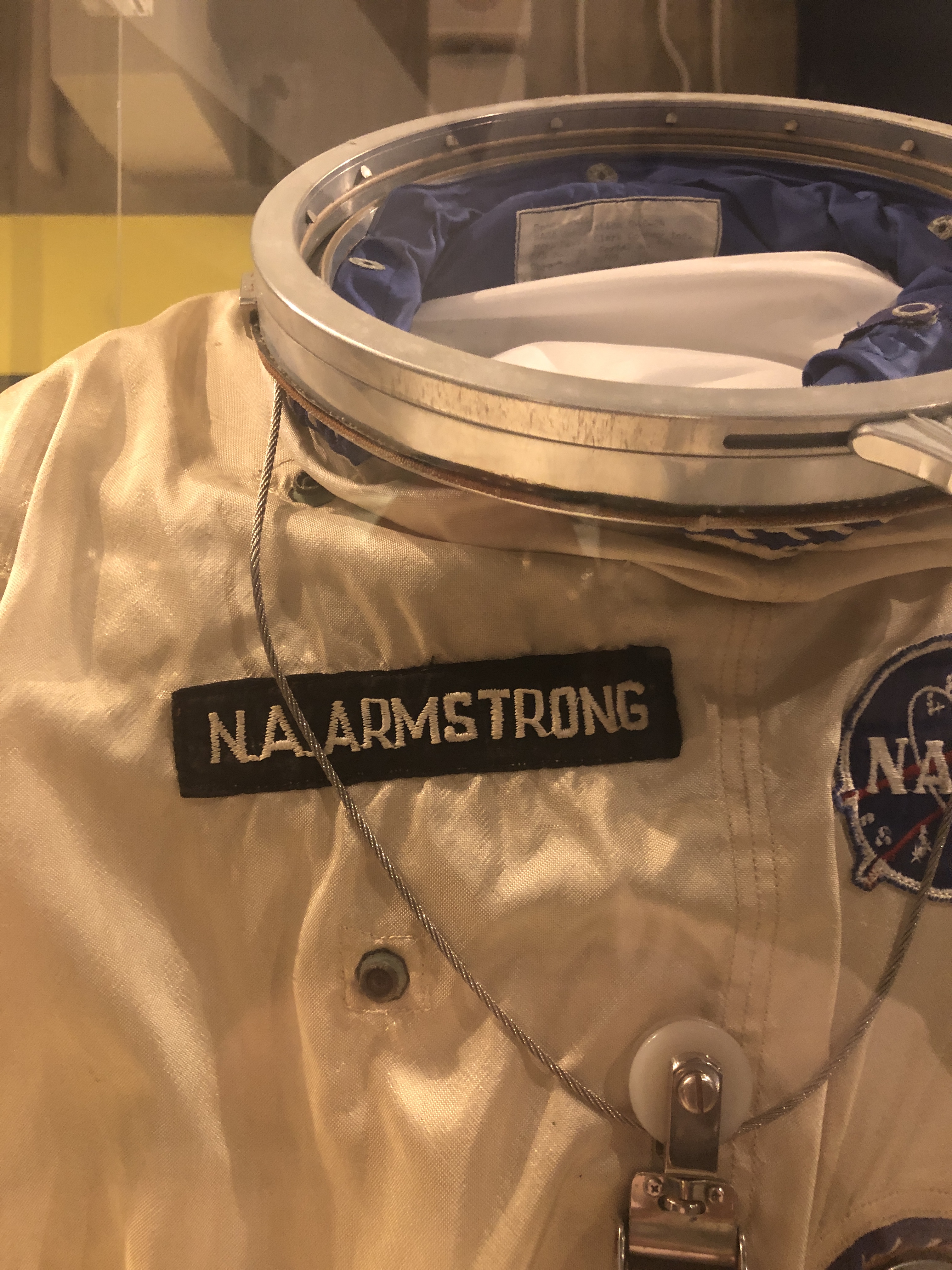 After a delicious lunch, we went to the Neil Armstrong Air & Space Museum. Neil Armstrong was born in Wapakoneta, Ohio and this facility stands as a tribute to him to tell the story of his life. While meandering through looking at exhibits, a staff (or really really knowledgeable person who just loves to talk) came by and told us about the Gemini 8 incident. Did you know what happened on the Gemini 8 mission? Neither did I. (Photo: Neil Armstrong’s space suit, worn on that mission, as well as the actual Gemini 8 capsule where he and David Scott sat.) I’ve found a three or so minute video that explains what happened up there. I was dumbfounded.