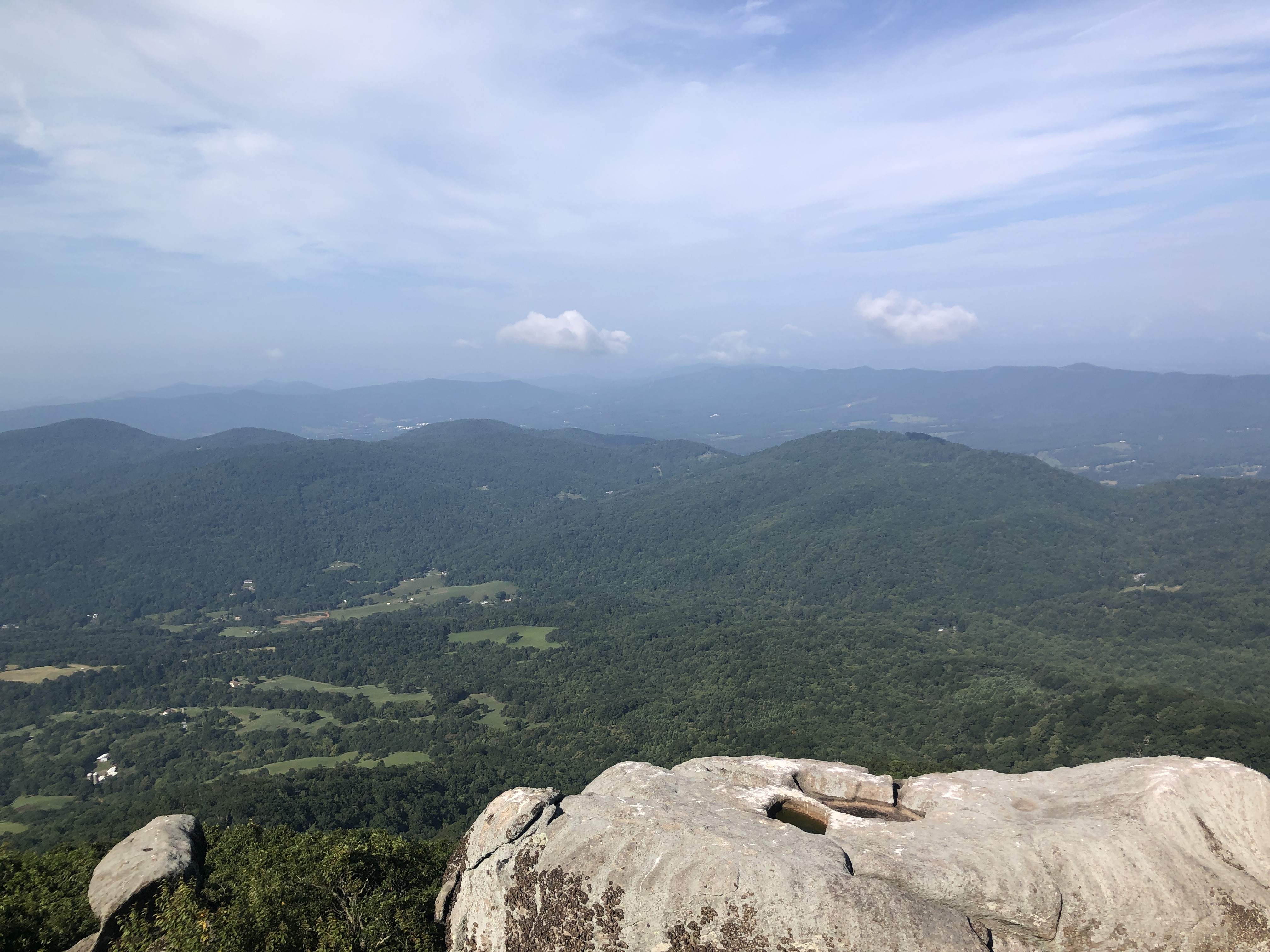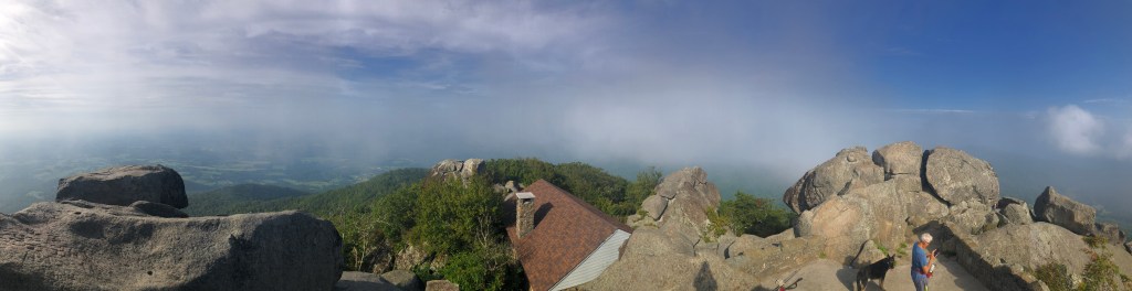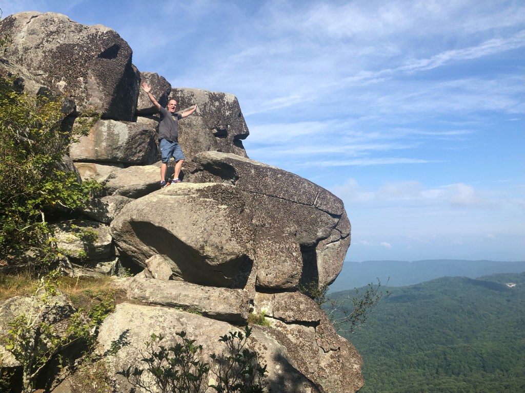 As a celebration of our 50 years on earth, we climbed a mountain. This one was called “Sharp Top” and is part of the “Peaks of Otter”. Look it up. Here’s me on one of the summits. It was steep uphill all the way. But when you’re turning fifty, you got to just look at challenges like that and throat-punch them. So we did.