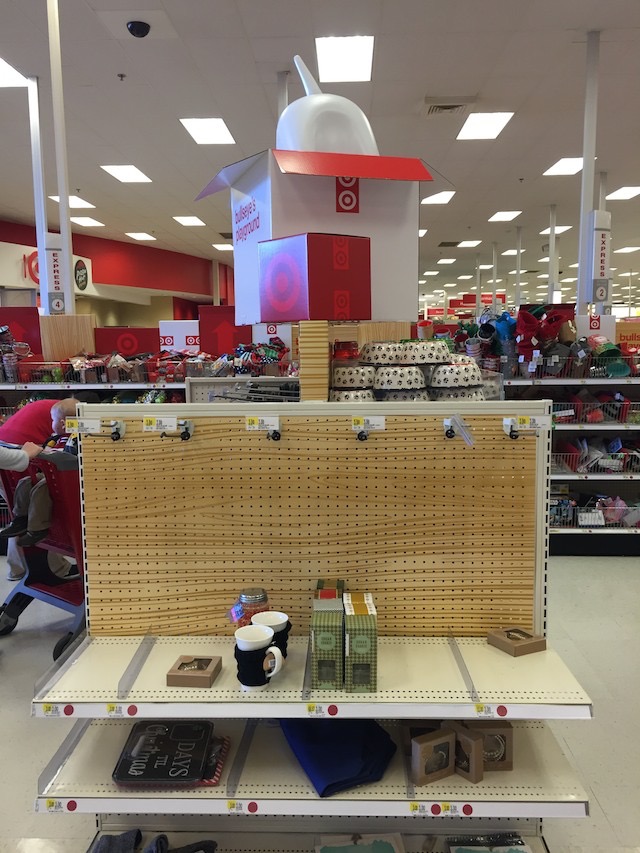 My wife and I swung into our local Target on December 26 to see if we could spy any sweet after-Christmas bargains. When we walked in, we saw that “One Spot” area that I think is standard issue at all Targets everywhere. I noticed two things immediately: 1) there was absolutely no sign of Christmas decor anywhere–it was all Valentine’s Day stuff and 2) the Valentine decor/gifts/knick-knacks were ALREADY picked over and shelves were mostly bare.