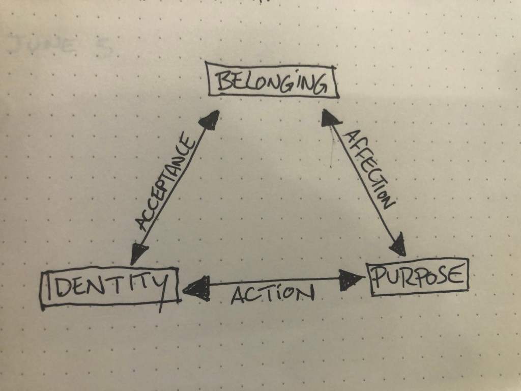 In true rabbit-trail fashion, I added to these three words three other words that I felt were reflective of the process that young people go through in terms of finding their identity, their place of belonging, and their purpose. Those words are: Acceptance, Affection, and Action.