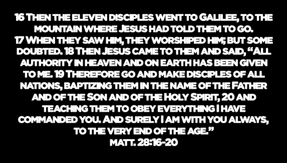 But that’s not even the most interesting part. What is astounding to me is that Jesus went full speed ahead on commissioning this group of disciples to carry out what we now refer to as “The Great Commission” found in Matt. 28:19-20. What I’m pointing out is that Jesus handed over the carrying on of His Kingdom on earth to a mixed-bag group of believers AND doubters. He could have (and maybe should have) said, “I’m not going anywhere until you can all prove to me that this Gospel is deeply rooted in your heart; that there’s not one shred of doubt within any of you, because the mission–MY MISSION–is far too important to just leave to a bunch of people who are still wondering if I’m the Son of God or not.”