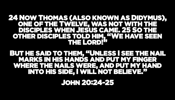 But look at where “Doubting Thomas” ended up. Some 3,000 miles away from that mountain where Jesus left him, we find Thomas carrying the Gospel message to the people of India and Turkey, and eventually we find Thomas meeting the end of a spear as a martyr for the Gospel message and the very Jesus that he insisted on seeing for himself. Thomas grew into full faith because he was willing to be real about his doubts.